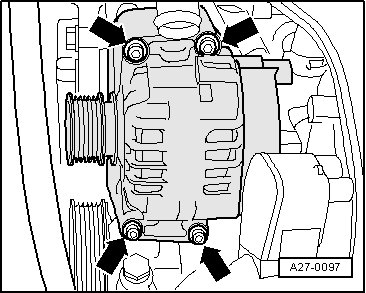 - Remove top and bottom bolts - arrows - and swing generator forward.