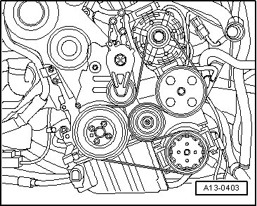 • Before installing the ribbed belt, ensure that all subassemblies (generator, a/c compressor etc.) are securely mounted and turn freely.