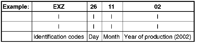 Code letters and production date - arrow 1 -