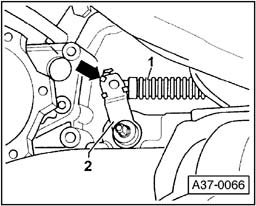 - Make sure that the selector lever cable - 1 - has not been bent or kinked and that it is not under tension.