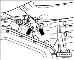 - Bolt on support bracket for selector lever cable - arrows -.