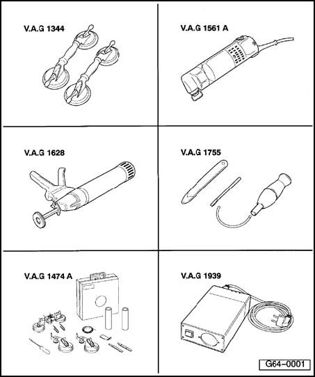 - Window Removing Kit V.A.G 1755 or Cutting Tools for Glass V.A.G 1351