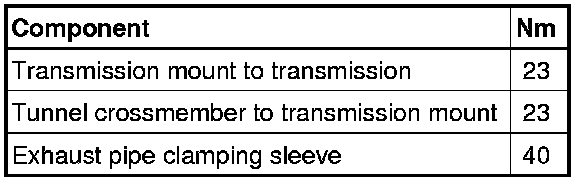 - Tighten the transmission mount to the transmission to 23 Nm - arrows -.
