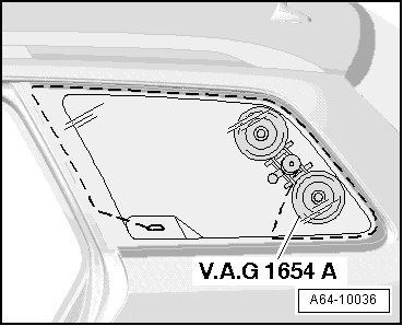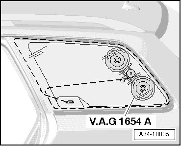 - Pierce through adhesive sealing material using a guide needle with handle from (V.A.G 1755) window removing kit.