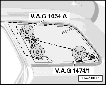 - Position (V.A.G 1474/1) roller as depicted in the illustration.