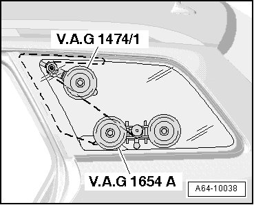 - Remove side window using (V.A.G 1344) double suction cups.