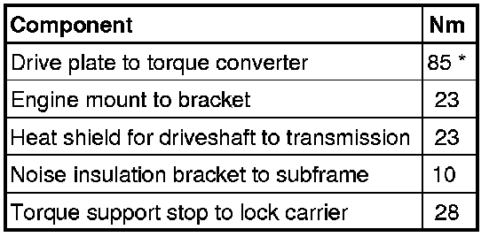 Before and during fastening the bolts of the engine/transmission flange, check that the torque converter can still be turned behind the drive plate. If the torque converter cannot be turned, it must be assumed that it has not been installed properly and that the drive plate of the torque converter or the ATF pump will be destroyed during final tightening of the bolts.