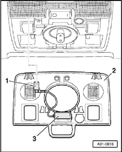 - Carefully remove cover from Front Interior Light W1 in - direction of arrow - using Special Hook 3370.