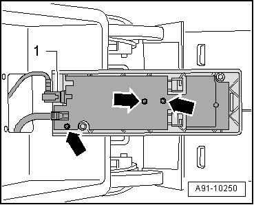 - Disconnect connector - 1 - and remove bolts - arrows - (1 Nm).