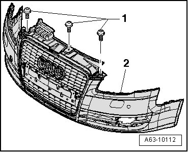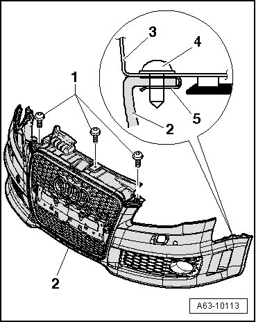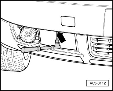 - Unthread left and right retaining bolts for bumper approx. 15 rotations -arrow-.