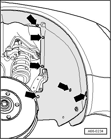 - Loosen left and right wheel housing liners in front area -arrows-.