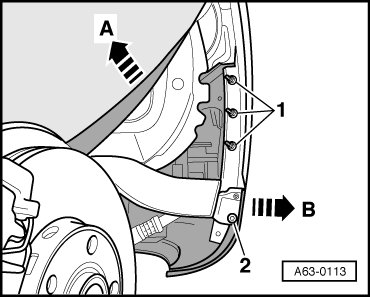 - Remove bolts and quick release screws -1- and -2-. Rear noise insulation (quick release screws -3-) remains installed.
