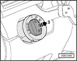 - Press light switch - arrow 1 - and turn toward right simultaneously - arrow 2 -.