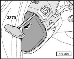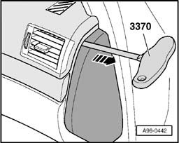 - Pull off left instrument panel cover - arrow - using special hook 3370.