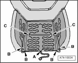 - Disconnect electrical connection wires to upper backrest heating element at positions - C -.