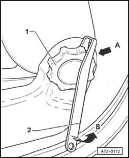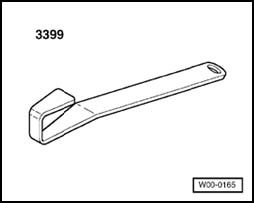 - Hook in assembly tool 3399 - 2 - and pry in - direction of arrow B -.