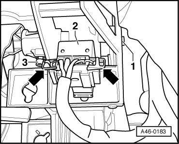 - Press the connector - 2 - together in the direction of the - arrows - and detach the brake light switch.