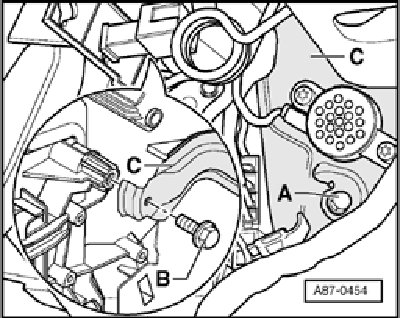 - Remove bolts - A - and - B - between support - C - and air conditioner.