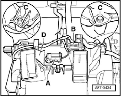 - Mark the two connectors - A - and - B - to the Left Footwell Vent Temperature Sensor G261 and the Right Footwell Vent Temperature Sensor G262 (to avoid interchange).