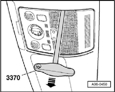 - Carefully remove interior lamp lens using hook 3370 as illustrated.