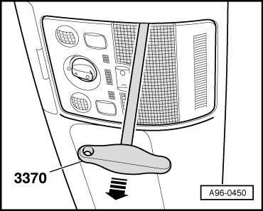 - Carefully remove interior lamp lens using hook ( 3370) as illustrated.