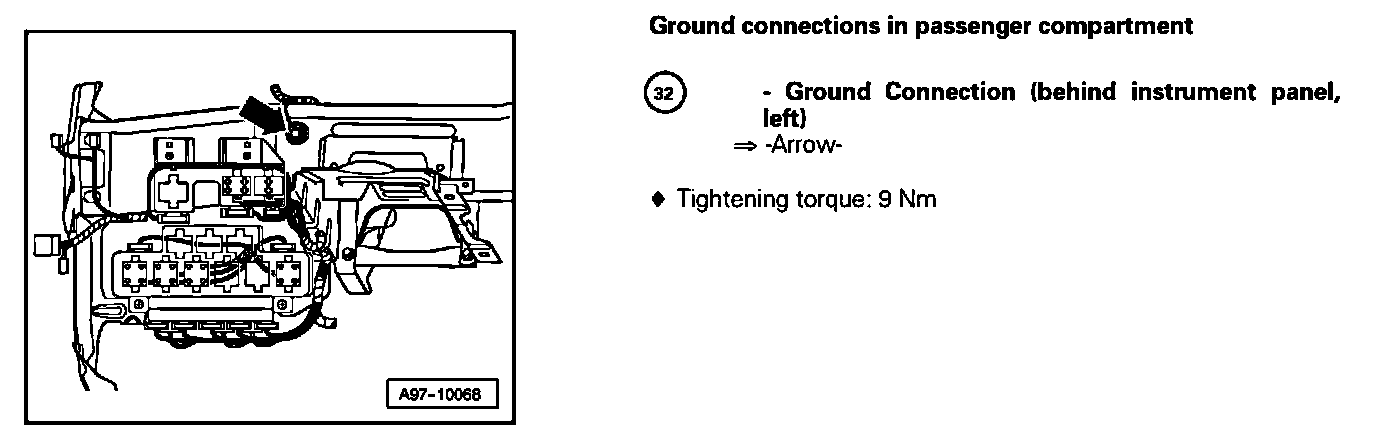 Ground Connection (Behind Instrument Panel, Left) 32: