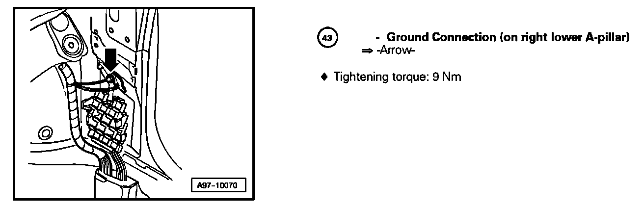 Ground Connection (On Right Lower A-pillar) 43: