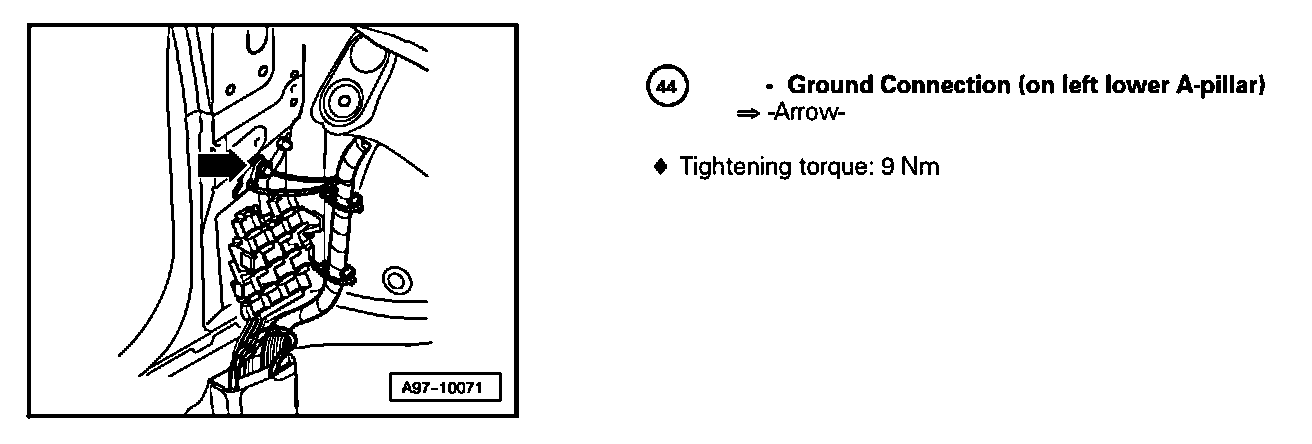 Ground Connection (On Left Lower A-pillar) 44: