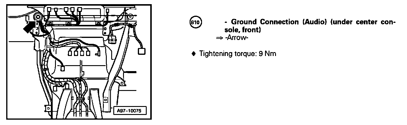 Ground Connection (Audio) (Under Center Console, Front) 610: