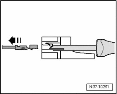 - At the same time, push release tool in direction of terminal housing and pull released contact out of terminal housing - arrow -.