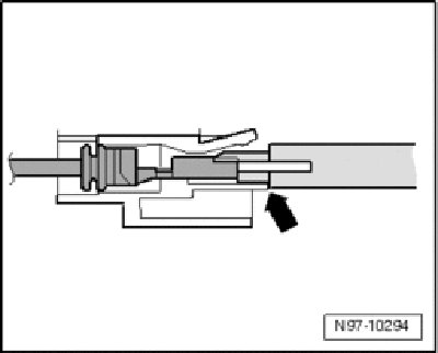 - Guide release tool (that fits terminal housing) into release channel on terminal housing - arrow -.