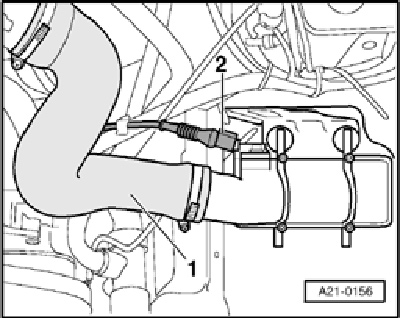 - Disconnect the electrical harness connector - 2 - from the Charge Air Pressure Sensor G31.