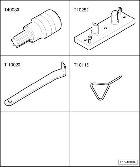 - Tighten camshaft adjuster screw. To do so, use socket insert T40080.