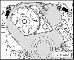 - Remove mounting bolt from camshaft adjuster and remove it with chain.