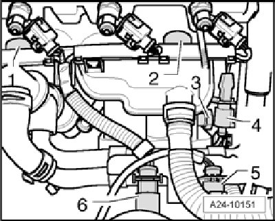 - The intake manifold runner position sensor G336 must be adapted to the engine control module J623 using diagnosis and service system VAS 5052 after removing or replacing the fuel rail.