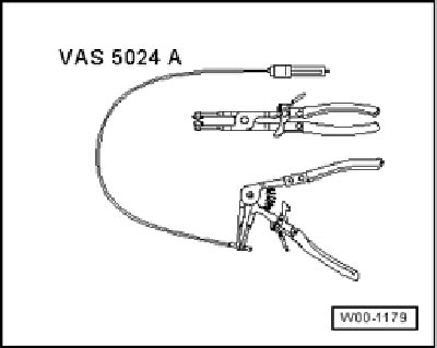 - Pliers for spring clamps VAS 5024A or Hose clamp pliers V.A.G 1921 are recommended for installing spring clamps.