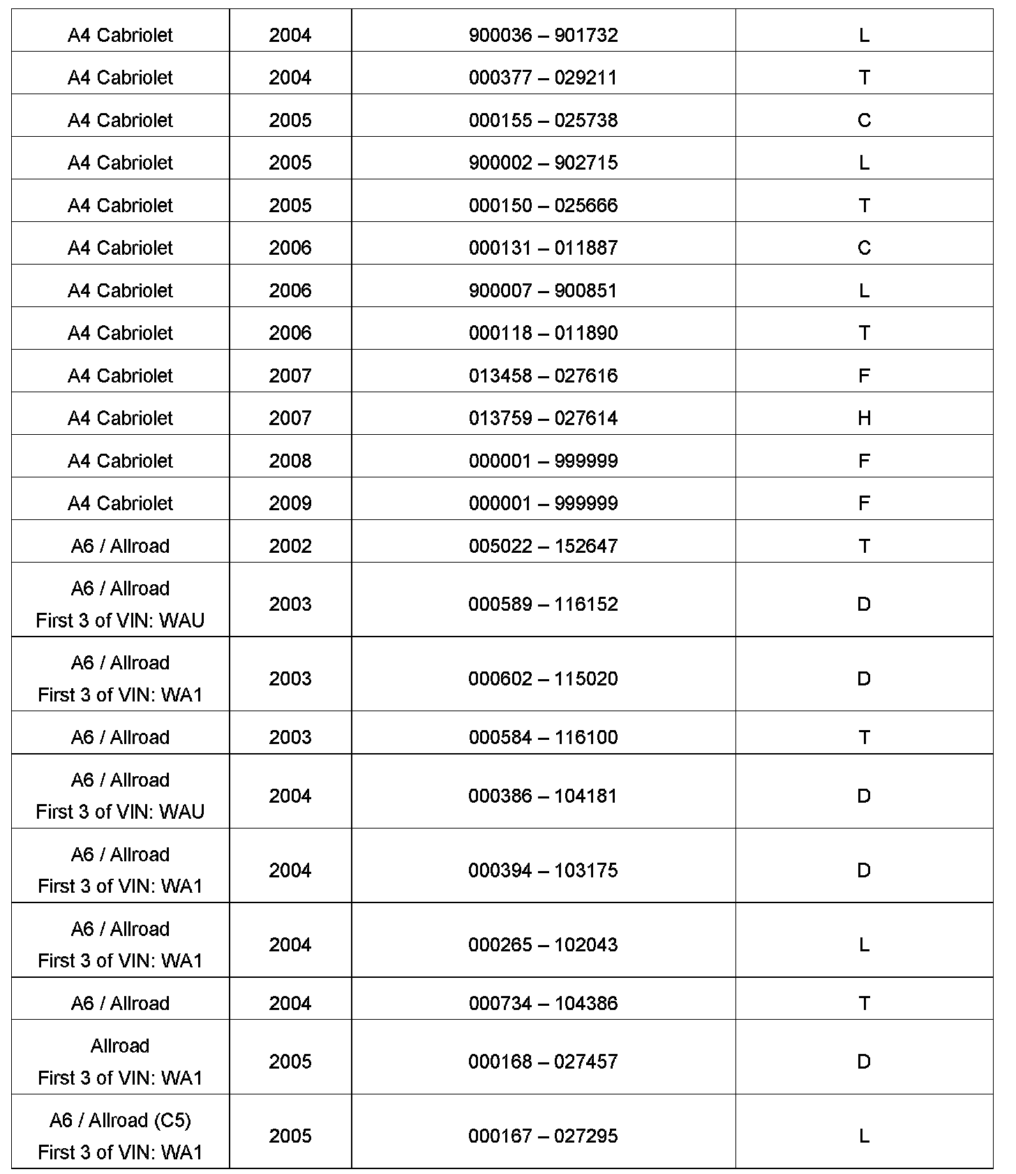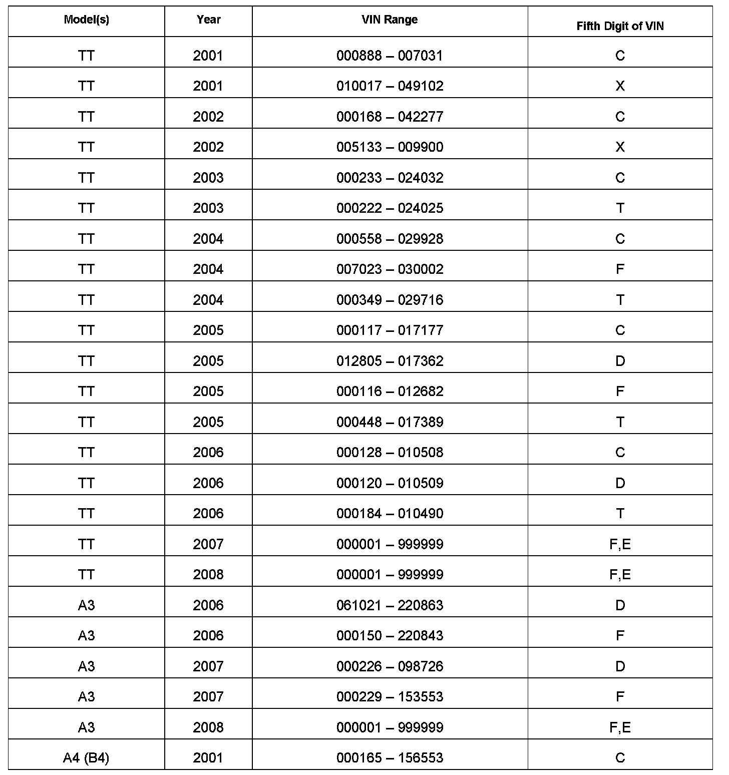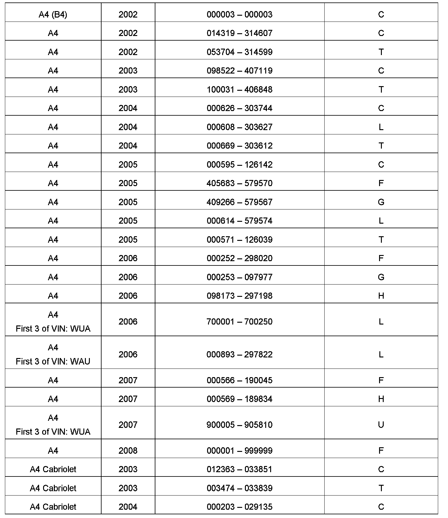 ^ Campaign 28F2/J1 has been performed. (Model year 2002 - 2007 only)