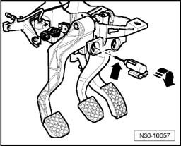 - When installing clutch pedal starter interlock switch, press clutch pedal - 1 - all the way down - arrow A -. Hold clutch pedal in this position.