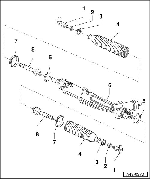 • Only use steering gear grease, Part No. AOF 063 000 04 to grease the rack.