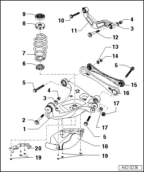 • Trapezoidal control arm mountings must not be replaced, if mounting is damaged, replace trapezoidal control arm