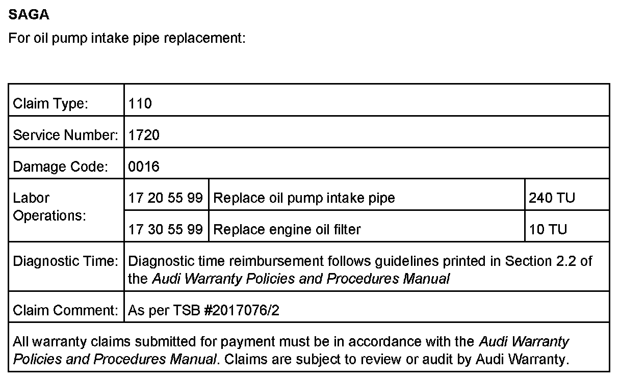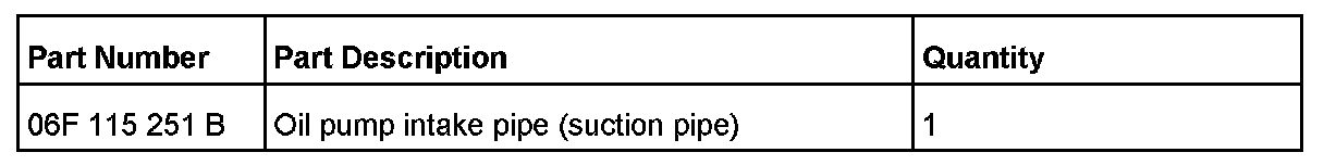 - Optimized the design of the oil pump intake pipe Part No. 06F 115 251 B.