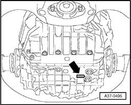 Code letters and serial number of transmission are stamped on underside of transmission housing - arrow -.