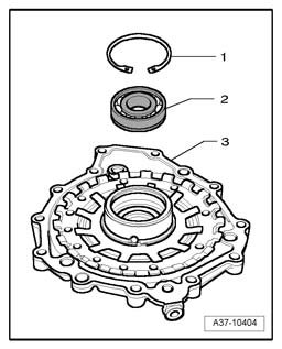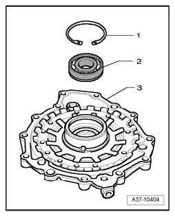 ^ Note the position of the bearing "A" - 2 - (transmission input shaft ball bearing): The ball bearing cage must face downward into the cover; the open side of the ball bearing must face upward, that is, the balls in the bearing must be visible when installed.