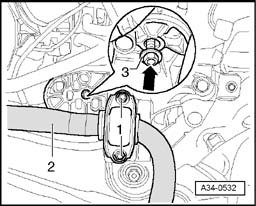 - Tighten bolts - 2 - on bracket - 3 - for selector lever cable to 23 Nm on transmission.