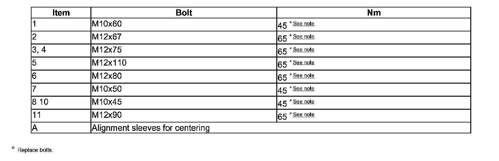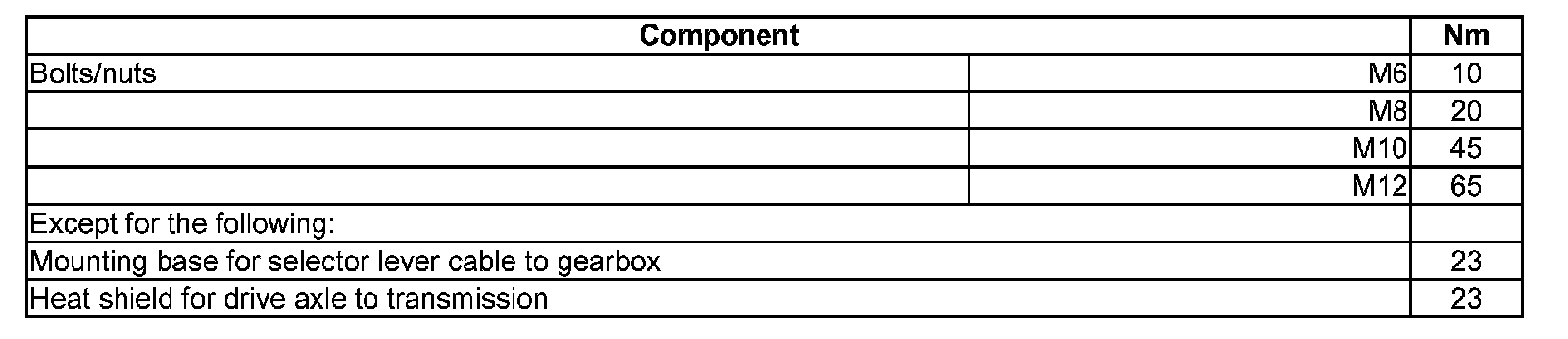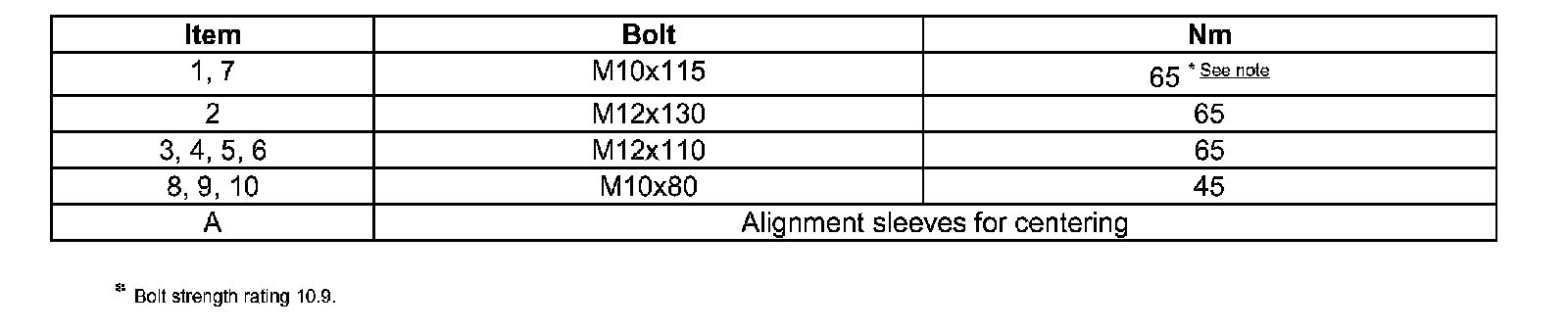^ Tightening torques are valid only for nuts and bolts that are lightly greased, oiled, covered with a thin coat of phosphate or blackened, tightening torques.