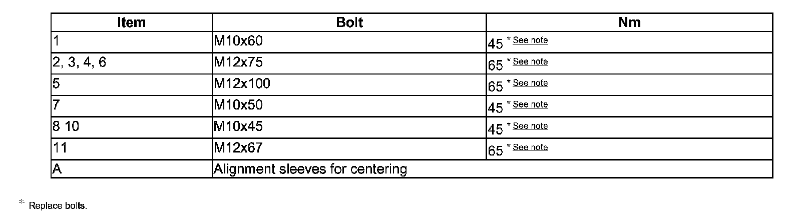 ^ Tolerance for torque specification ±15%.
