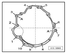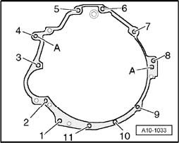 - Tighten connecting bolts on engine/transmission flange to tightening torque (tables).