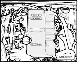 ^ So that the 4 engine/transmission connecting bolts at bottom can be removed on the Audi Cabriolet, the following work steps must also be performed:
