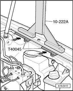- Support tunnel cross member using Engine/Transmission Jack V.A.G 1383 A.