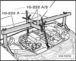 - Position engine support bridge 10-222 A with adapters 10-222/3 on to bolted flanges of fender.
